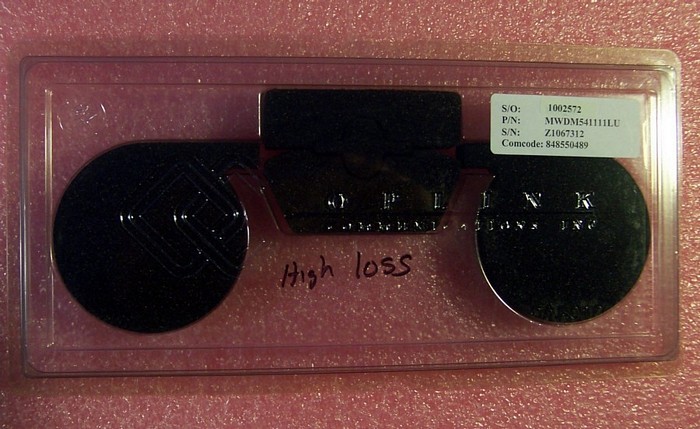(1460-1490)nm/(1528-1563)nm WDM combiner. Oplink P/N: MWDM541111LU. It is marked 'high loss'. Used, without actual test data. 'Sell As Is', 'No return'