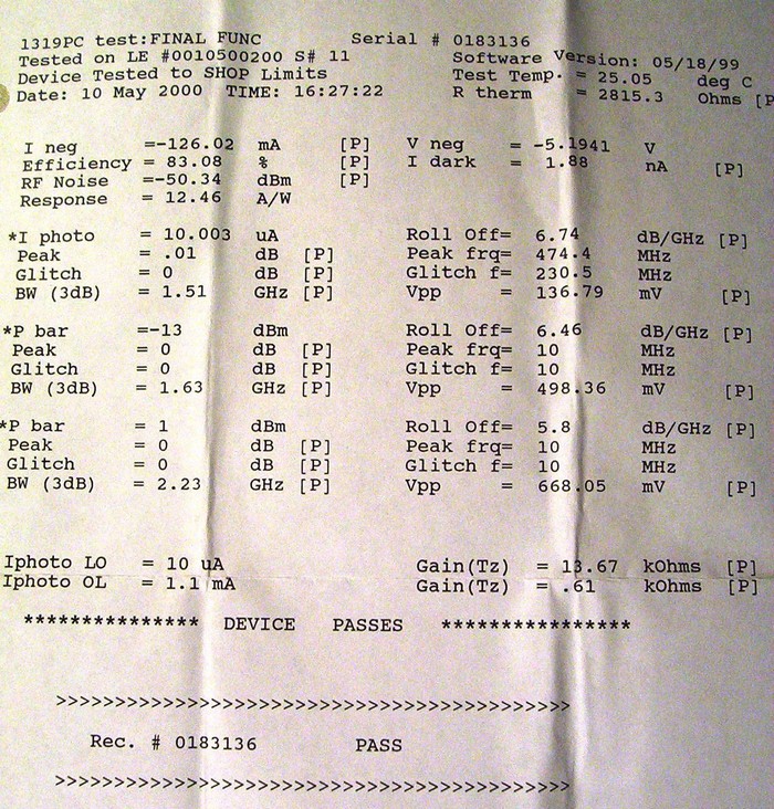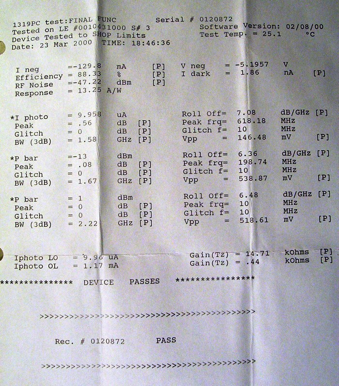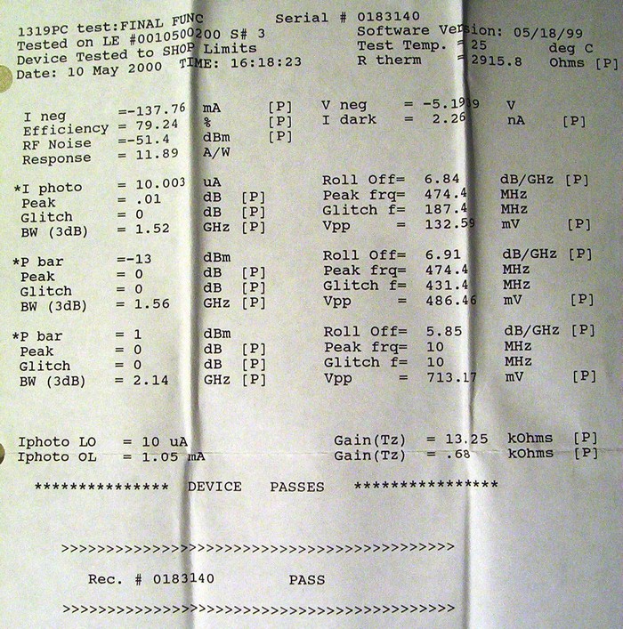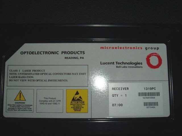 $25 each if buy 10pc. Min order qty=5.    2.5Gbps 1.3/1.55um Pin-Amp Receiver Module. Lucent P/N: 1319PC, with MU fiber connector.