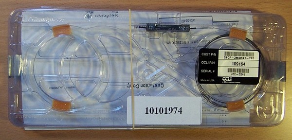 Gain-flat filter for EDFA pre-amplfier and inline amplifier of Marconi products. Minimum insertion loss < 1.2dB at 1537.4nm (wavelength independent loss). Error function < 0.7dB. With 250um-coating bare SMF-28 fiber without connector. Made for buyer : Marconi. See general datasheet at 1st pdf link below. See manufacture test data from our samples at last three pdf links below. Made in USA. We cannot find info of manufacture date.