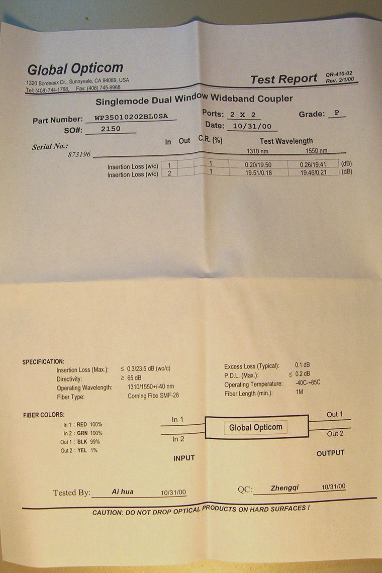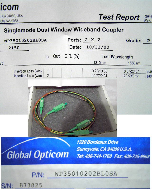 Global Opticom Singlemode Dual-Window Wideband Coupler
