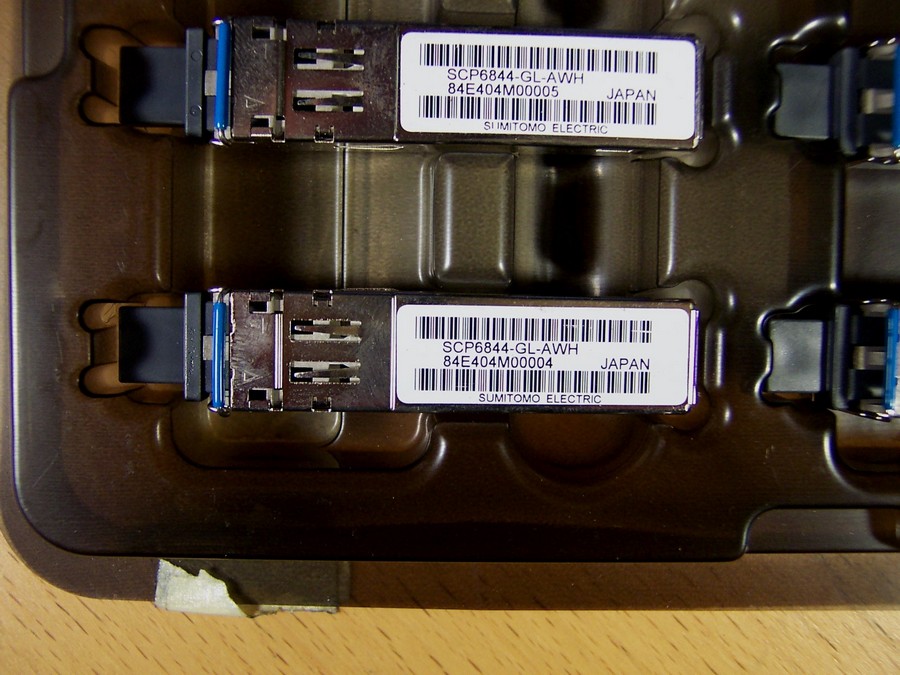 1.3um 1.06Gb/1.25Gb FP-laser SFP transceiver.  -6/-7 dBm typical, SMF/MMF.  Duplex LC/PC interface.  SUMITOMO P/N: SCP6844-GL-AWH