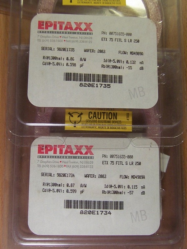 1.55um/1.31um PIN photodiode, 75um active area detector. With SM fiber. Epitaxx model: ETX 75 FITL S LR 250