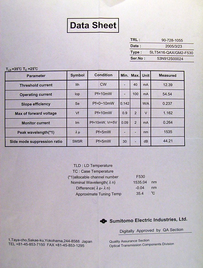 OSC-LDS-C-201C2 SLT5416-QAX-GM2-F530: 1535.04nm 12 US$210.00 + -