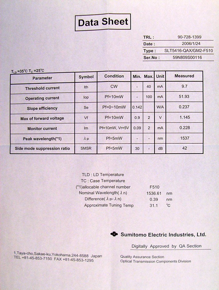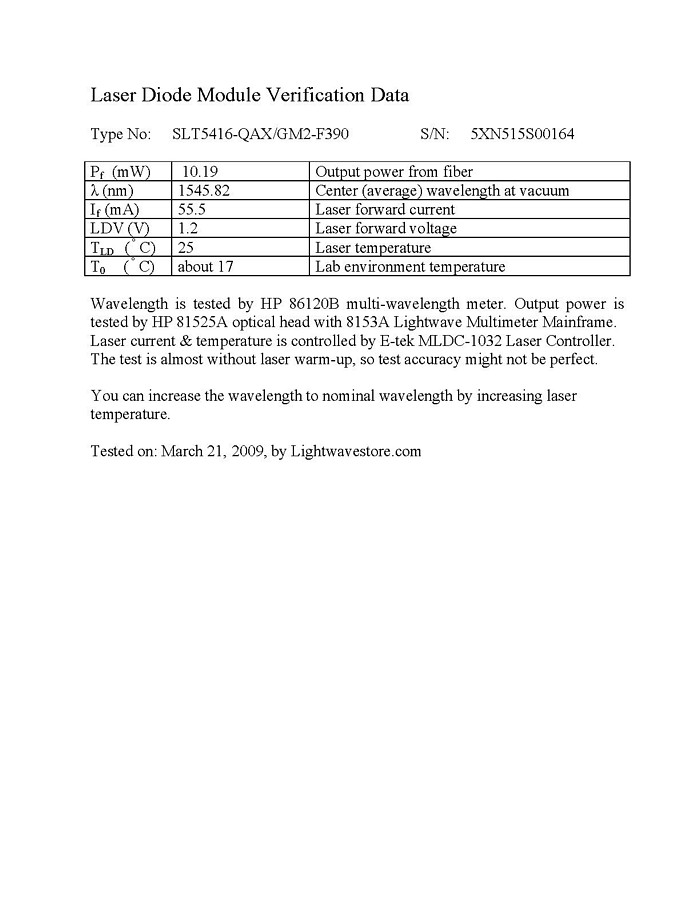 OSC-LDS-C-201C7 SLT5416-QAX-GM2-F430: 1542.94nm 2 US$210.00 + -