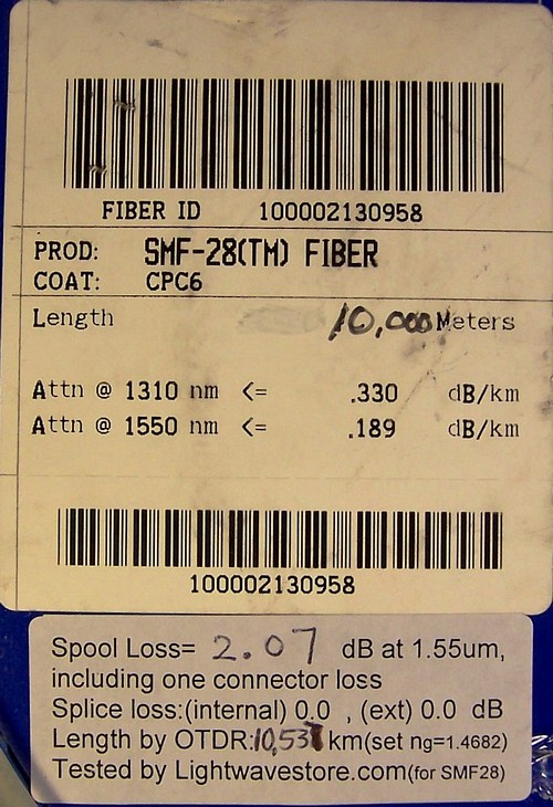 10.54km SMF-28 bare fiber spool, with 2 SC/PC connectors