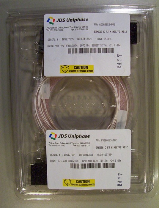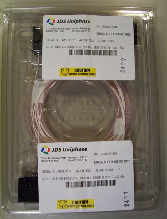 1000MHz optical PIN-TIA receiver. Bandwidth: about 1000MHz. 1.31/155um. Multimode fiber. With MSC/PC connector. JDS model: ERM536 C FJ M MSC/PC MB12