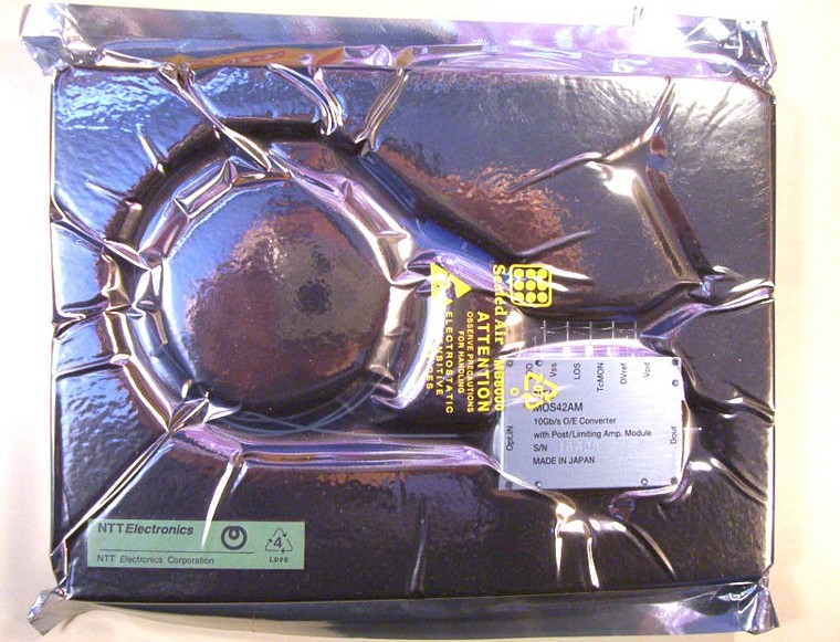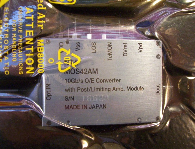 10Gb O/E Converter, with SMA RF output connector, NTT model: MOS42AM. with Post/Limiting amplifier module. with SC/PC fiber connector. Made by NTT electronics in Japan.