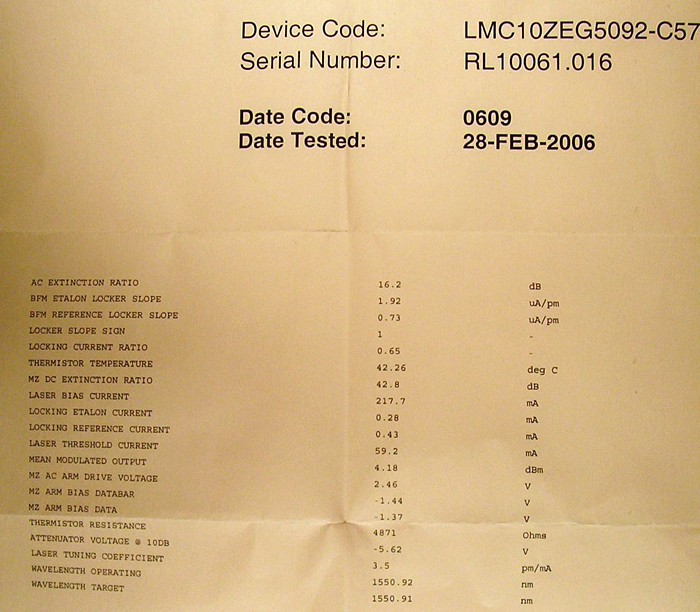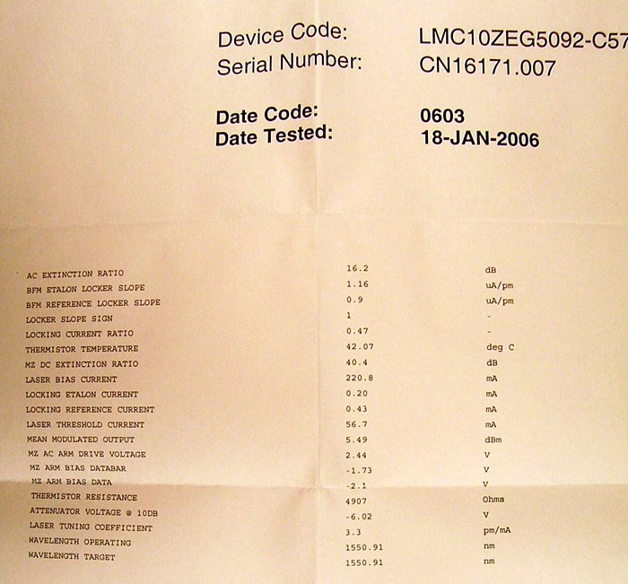Wavelengths and model numbers: 1546.12nm, LMC10ZEG4612-J57; 1546.92nm, LMC10ZEG4692-C57; 1547.72nm, LMC10ZEG4772-C57; 1550.12nm, LMC10ZEG5012-J57; 1550.92nm, LMC10ZEG5092-C57, with full test sheet (last 2 photos), 1550.92nm, LMC10ZEG5092-C57, 1550.92nm, LMC10ZEG5092-J57, 1550.12nm, LMC10ZEG5012-J57, 1552.52nm, LMC10ZEG5252-C57; 1554.13nm, LMC10ZEG5413-J57.