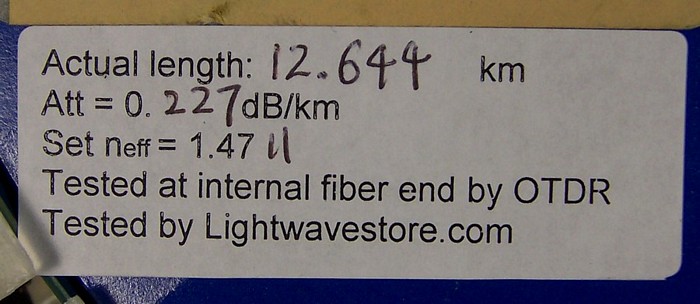 12.644km dispersion-shifted fiber (DS,DSF) spool.