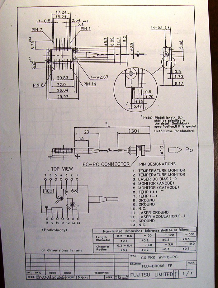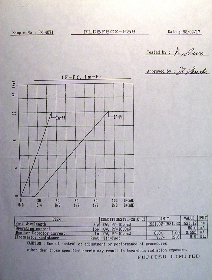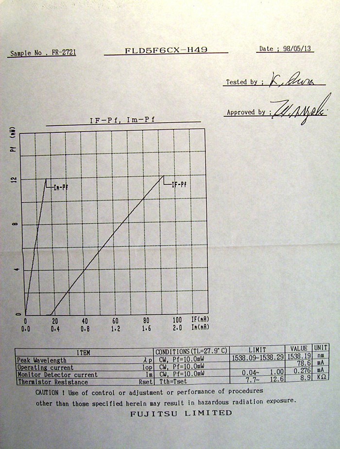 1531.12nm, 1538.19nm, or 1542.14nm, 10mW Fujitsu FLD5F6CX-Hxx DFB Laser