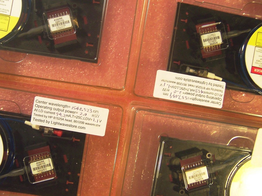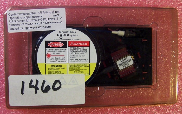 1551.397nm 2mW 2.5Gb DFB laser module, Lucent/Agere P/N: D2511G. Used, soldered, with short leads. Without manufacture test data