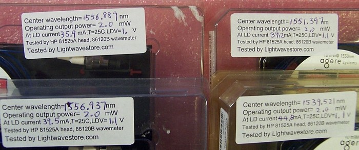 900um buffered fiber with FC/PC connector. The test data of other samples show 2mW CW. The laser is designed for direct 2.5Gb/s modulation at 2mW peak.