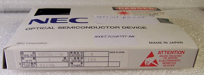 1539.76nm 20mW DWDM laser module, NEC P/N: NX8570SA397-BA. With integrated wavelength monitor and etalon filter. Non-standard pinout.