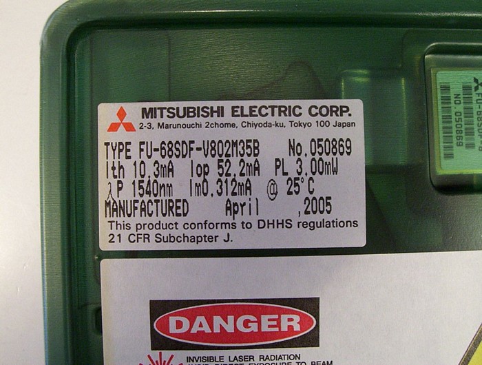 1539.76nm >2mW isolated DFB Laser for 2.5Gb tansmission,  With FC/PC fiber connector.  Mitsubishi model: FU-68SDF-V802M35B
