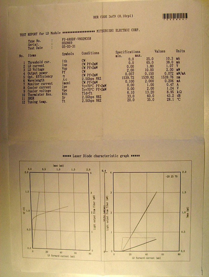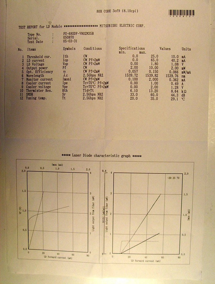 1539.76nm >2mW isolated DFB Laser for 2.5Gb tansmission, With FC/PC fiber connector. Mitsubishi model: FU-68SDF-V802M35B