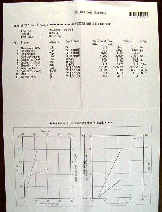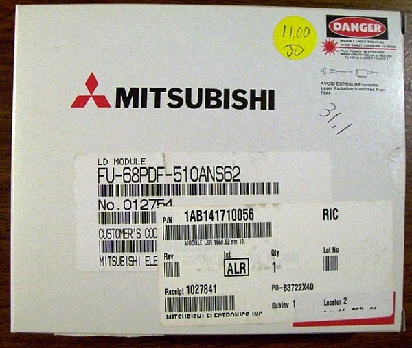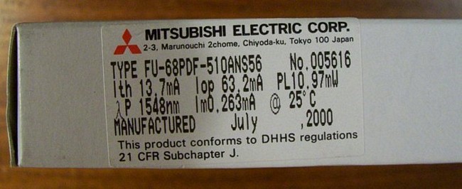 1552.12nm, 1555.75nm, or 1558.58nm 10mW DFB CW laser, Mitsubishi Type No : FU-68PDF-510ANS66/75/82