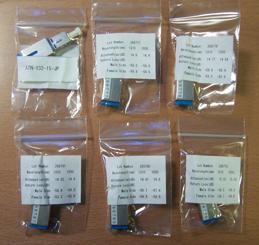 Attenuation tolarance: Premier grade, 15dB +/-0.75dB, Doped attenuator. SC/SPC. Checked sample test datas, seem all return loss > 55dB. So it is equivalent to SC/UPC, and it can be used with SC/PC, SC/SPC, SC/UPC connectors. male to female, SMF, work for both 1310/1550nm, with metal housing. "1" after "ATN" in P/N means SC type. "Premier" is marked on the product box of 8dB-version product as showin at the last pdf link below (Senko P/N: ATN-132-08-JP), so "JP" means premier grade in this Senko P/N: ATN-132-15-JP.