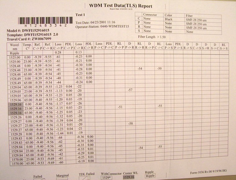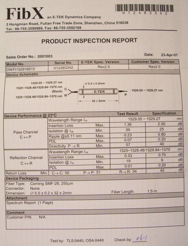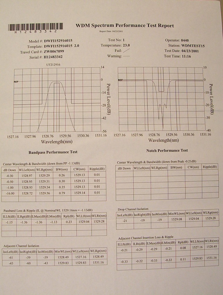 pass-band: 1529.05 - 1529.27nm. 100GHz spacing DWDM demultiplexer. FibX (JDS) Model number: DWFI152916015. 250um SMF-28 pigtail. Photos below are from a sample of what we have