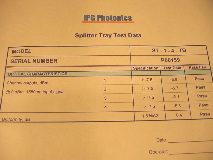 IPG Photonics Model: ST14TB. up to 1 watt. Only sample test sheet available here