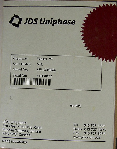 1x4 JDSU non-latching Switch with 4 FC/APC connectors. For 1.55um. TTL drive. JDS P/N: SW104+2275USPL1.5, model: SW+2-00066