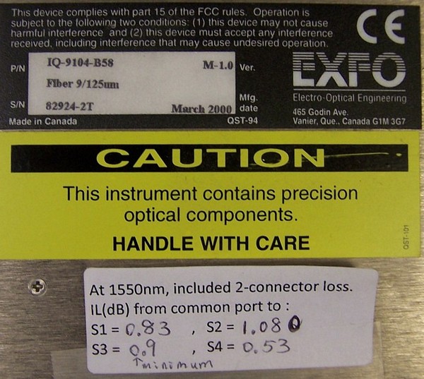 1x4 optical switch module over 1550nm. With FC/APC optical interface. EXFO P/N: IQ-9104-B58, version M-1.0.