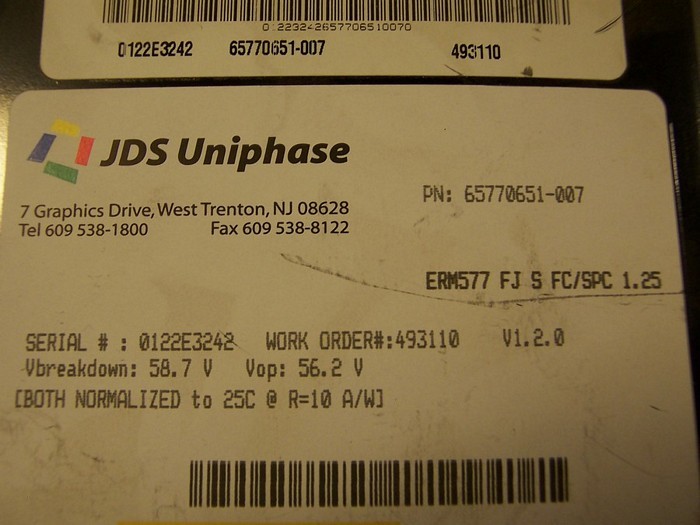 2.5Gb high-gain APD/Preamp receiver, JDS model: ERM577 FJ S FC/SPC 1.25. P/N:65770651-007. With FC/SPC fiber connector