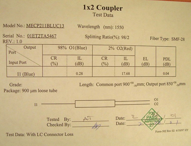 with 250um SMF-28 fiber pigtails. With test report.