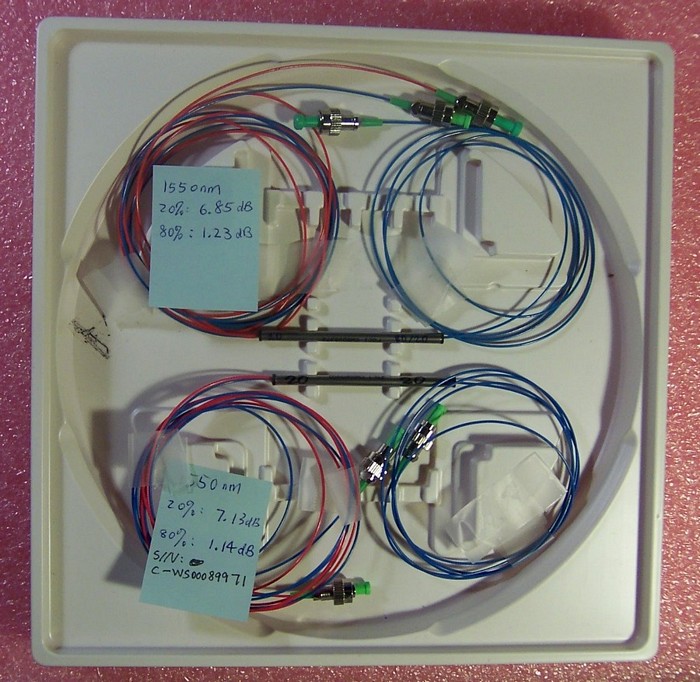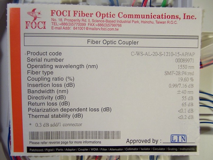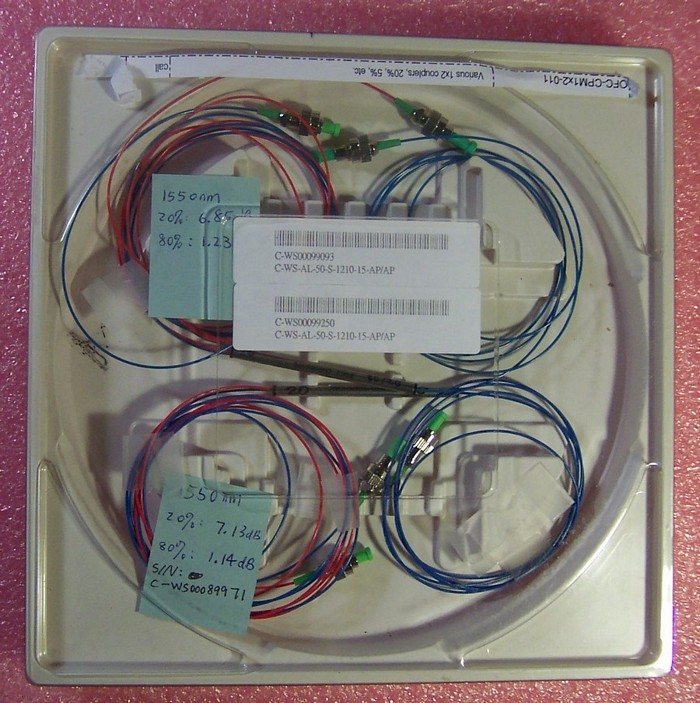 20%/80% 1x2 tap coupler over 1550nm+/-40nm. With three FC/APC connectors. FOCI model: C-WS-AL-20-S-1210-15-AP/AP