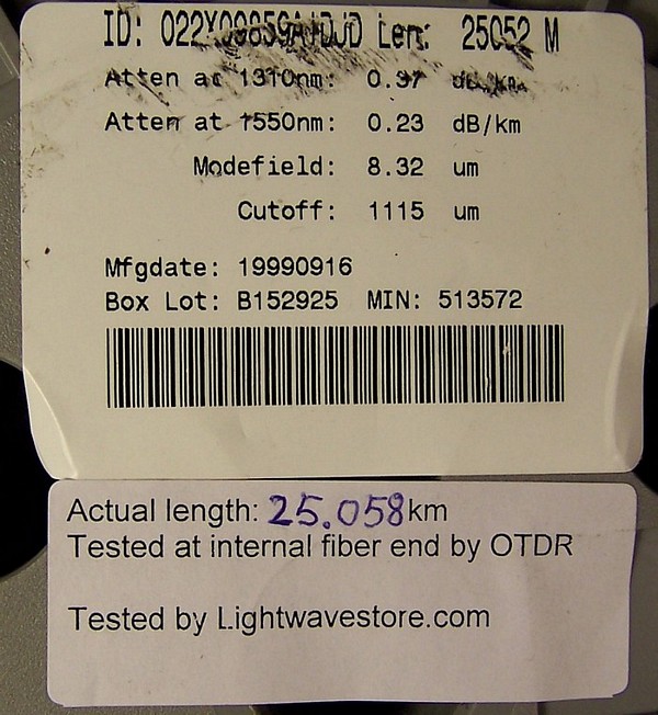 25km Lucent truewave-RS fiber spool. Fiber is cut at spool internal end, so you cannot use it for transmission test.