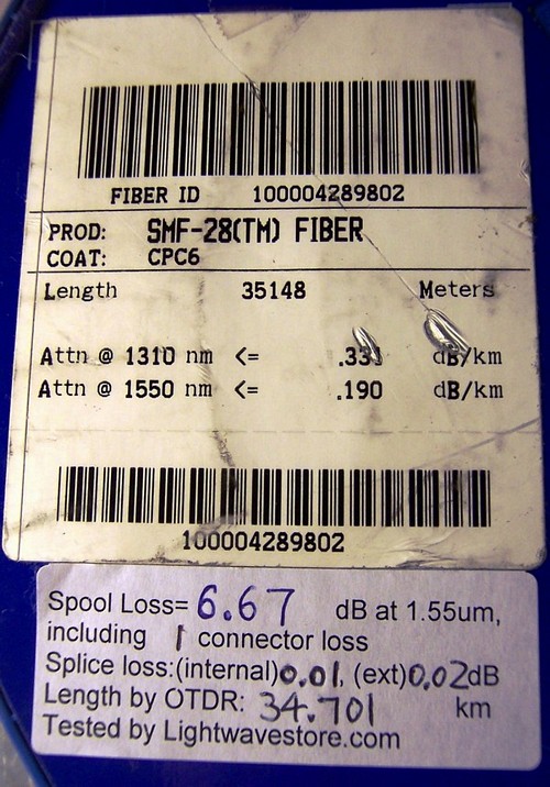 Fiber roll is in good condition. With hard plastic cover and handle. There are three cracks on hard plastic cover, we fixed them by tape. Fiber loss and fiber length are verified good and match the product label approximately within test accuracy, as shown at the label of last photo.