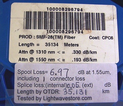 35.134km SMF-28 bare fiber spool, with 2 LC/PC connectors