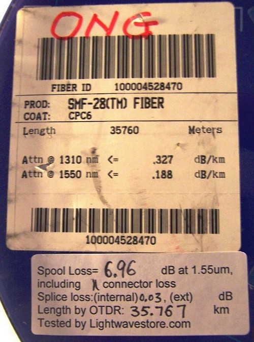 Very good cosmetic condition. Fiber roll is in good condition. With hard plastic cover and handle. Fiber loss and fiber length are verified good and match the product label well within test accuracy, as shown at the label of last photo.