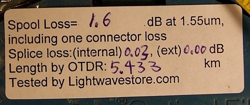 Used, there is large crack on top side of drum (see 2nd photo below). Fiber length is tested by OTDR approximately at our lab, spool loss is tested at our lab, see last photo below.