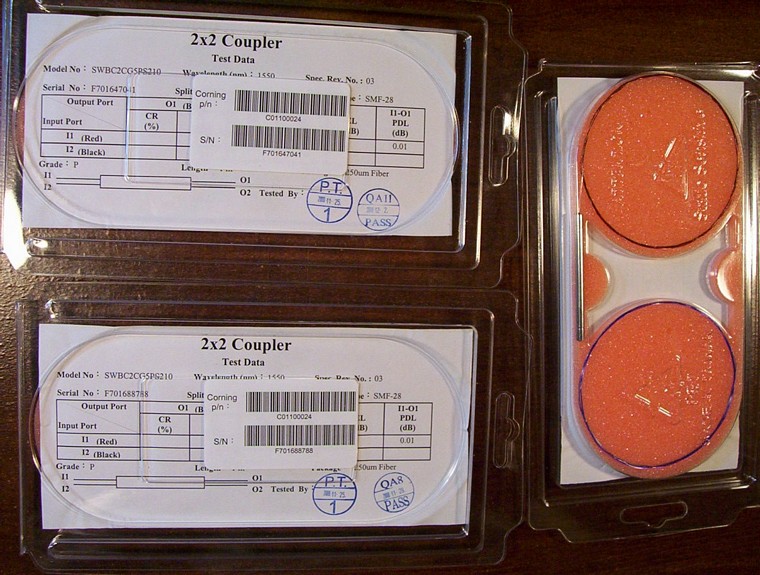 5%/95% 2x2 coupler @1.55um, 250um SMF-28 pigtails, for Corning