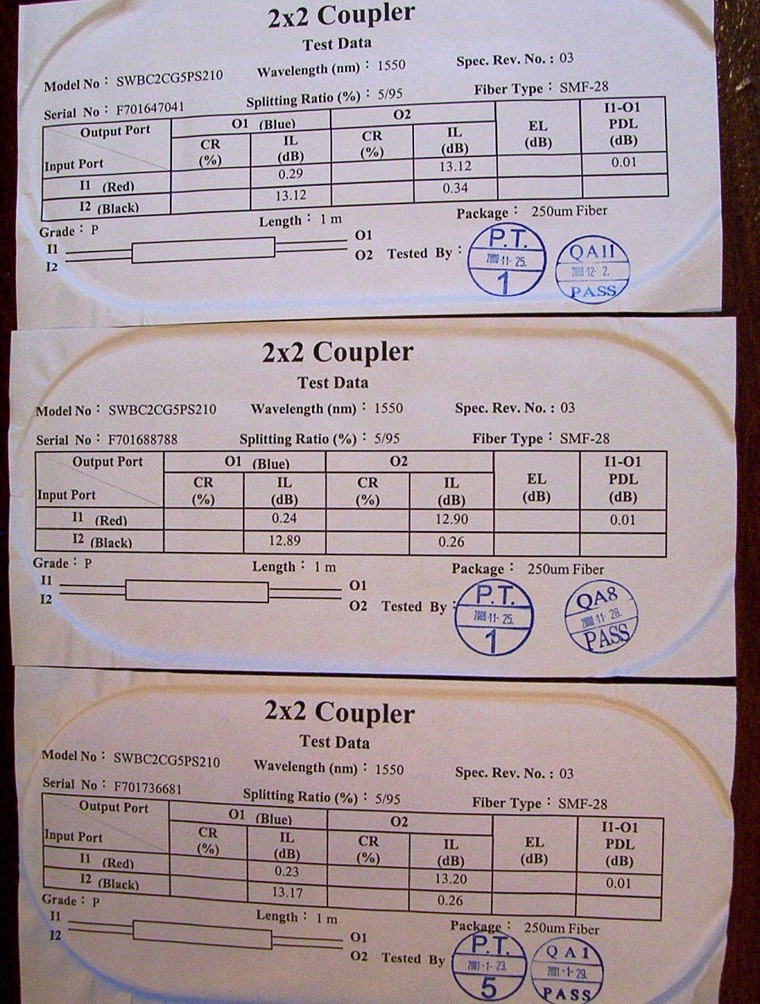 With test data at 1.55um, E-tek model: SWBC2CG5PS210, ("WB" should mean wideband), premier grade.