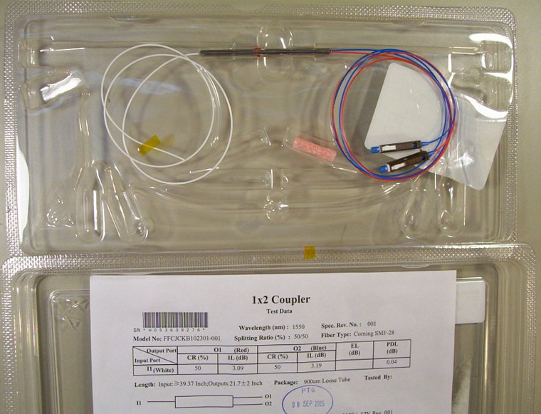 50% 1x2 coupler around 1550nm band, model:FFCJCKB102301-001. W/MU connectors.