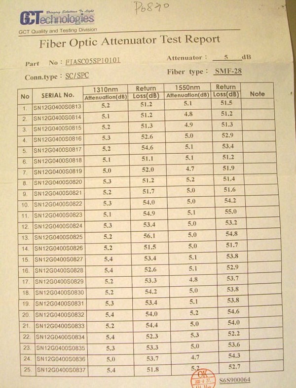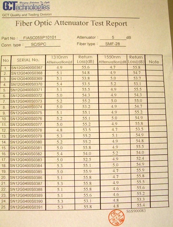 male to female, 5dB, with metal frame, for SMF. Ceramic internal sleeve. With test sheet