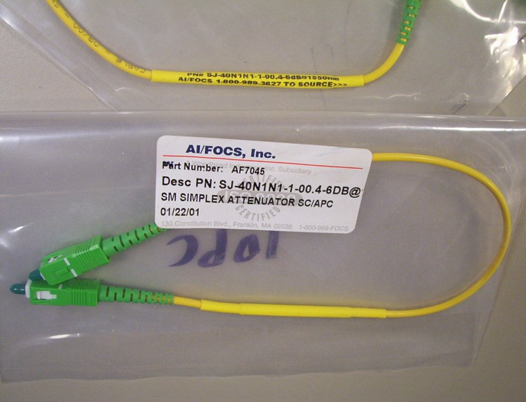 Fixed 6 dB loss, SMF, SC/APC connectors, simplex 3mm cable. AL/FOCUS P/N: SJ-40N1N1-1-00.4-6dB@1550nm. One sample was tested about 6dB in our lab.