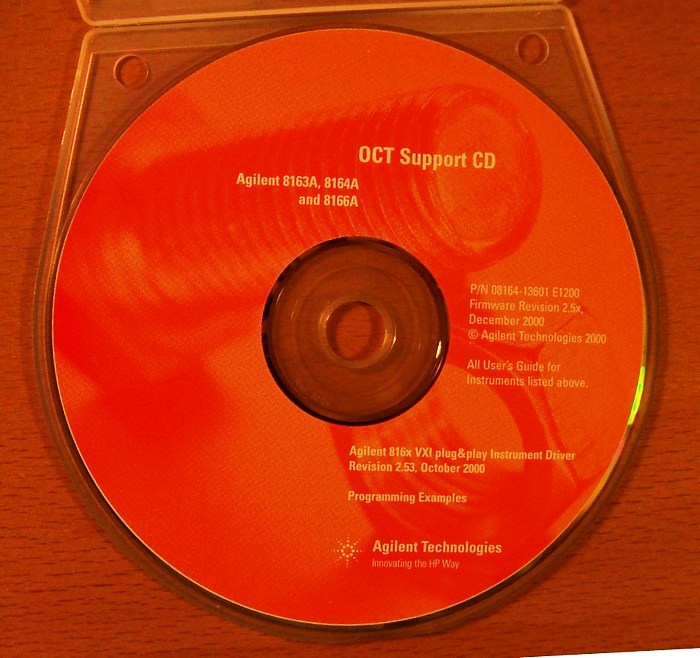 OCT support CD include firmware 2.5 or 2.5×, all user's guides, programming exampleVXI plug&play instrument driver 2.5 or 2.53, published in Sept or Dec 2000