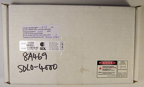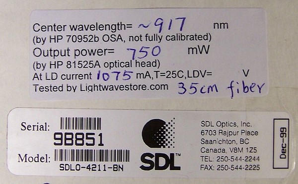 910-925nm >750mW multimode pump laser. High power, high reliability. for double-clad fiber amp. or Raman amp. SLD/JDSU product code: SLDO-4000. Fiber is only 35cm long.