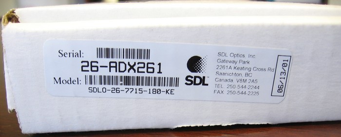 977nm 160mW pump laser with FBG stabilizer. JDSU(SDL) product code: SDLO-26-7715-180-KE. Good test result but kink-free power is not perfect