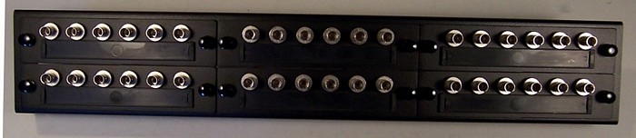 Adapter panels in 19 inch rack. With 36 ST adapters. With bronze internal sleeve. Fo MM fiber. Ortronics model: OR-615MMC-72P-00