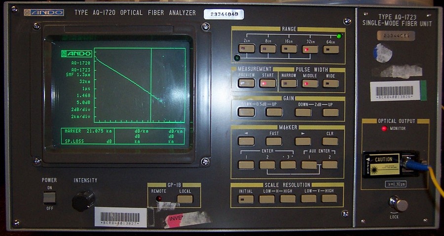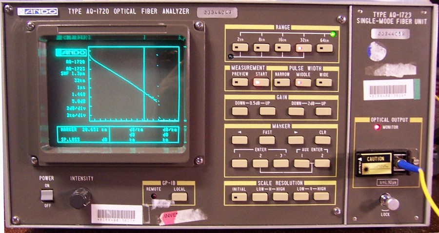 ANDO AQ-1720 Optical FiberOptic Analyzer with 1.3um single-mode fiber plug-in module AQ1723. OTDR