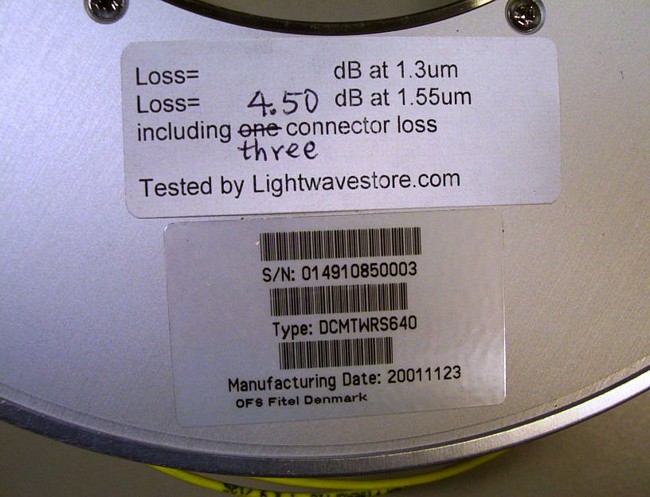 DCM (fiber spool) for truewave fiber by Lucent. About -640ps/nm at 1585nm. Type: DCMTWRS640.