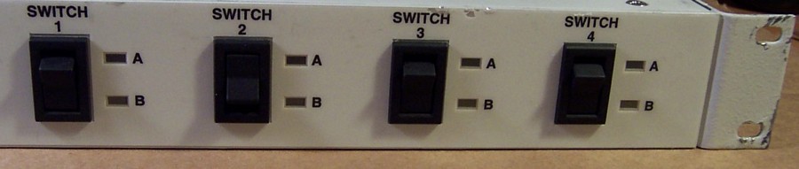 It includes four 2x2 individual switches, which can be controlled individually from front panel. There are two 2x2 Dicon prism switches inside enclosure. If choose 'A' at the front panel, switch at back panel is at bypass state. If choose 'B' at the front panel, switch at back panel is at inserted state. See 'bypass state ' and 'inserted state' diagram and general specification at 1st pdf link below.
