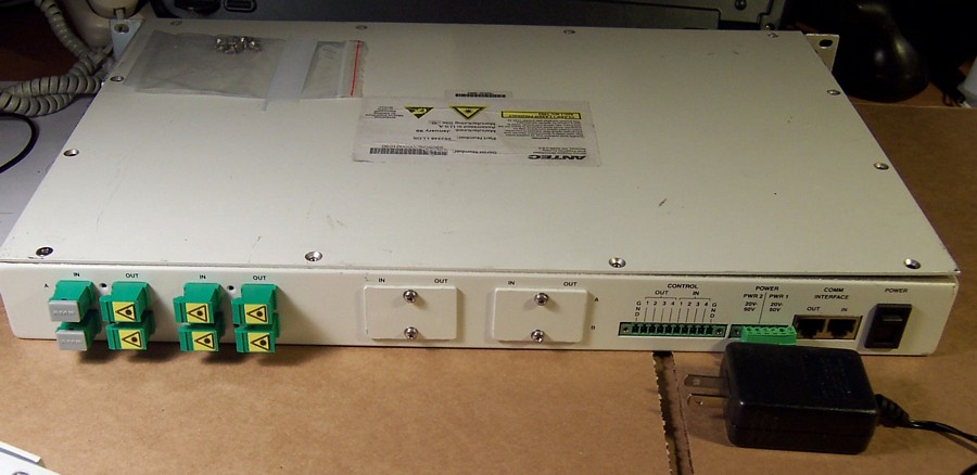 Dual 2x2 optical latching switch. With 8 SC/APC adapters. Antec P/N: 253346 LLOS.  Verified working well at 1550nm