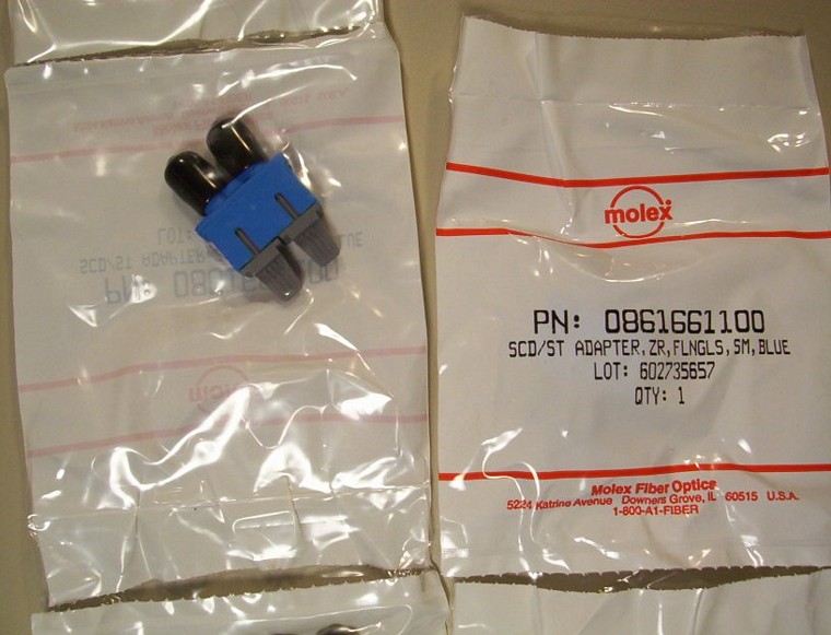 Duplex SC to ST adapter, with zirconia internal sleeve, by molex. Without flange.