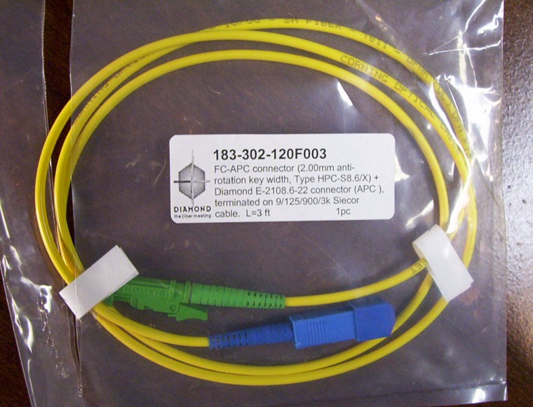 E2000 (angled) - SC/PC, SMF, 3-feet, simplex 3mm dia cable.