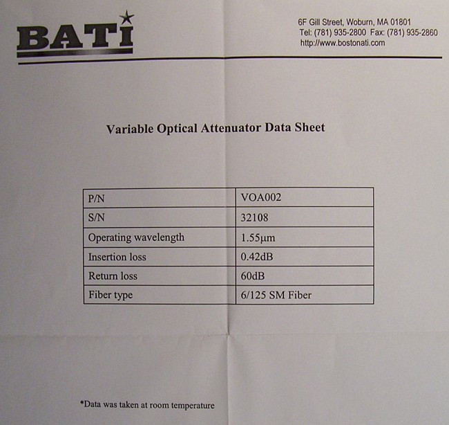 EclipseTM Variable Optical Attenuator/Modulator. 30us high-speed attenuation control with modulation capability. BATI P/N: VOA002
