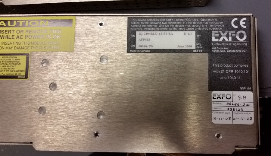 EXFO IQ-2400 WDM LASER SOURCE, 1582.02nm, Model: IQ-2404BLD-62-P3-EA D-1.1